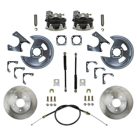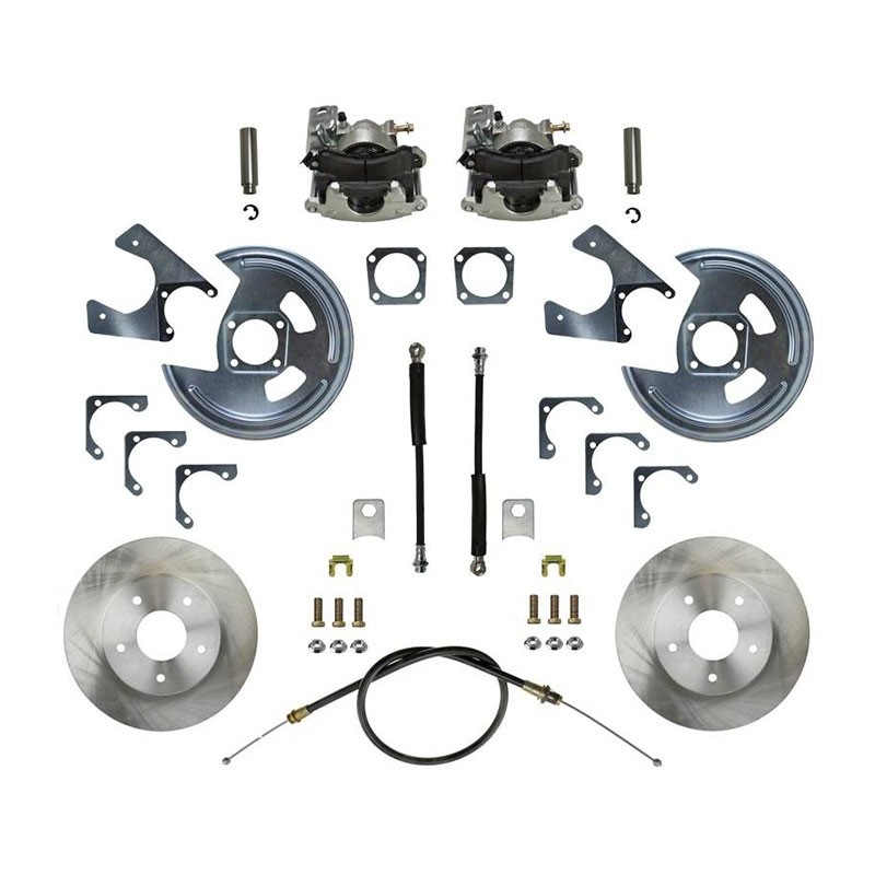 1968-1974 Nova rear disc brake conversion. Add the safety, reliability and performance of rear disc brakes to your vehicle with our GM 10 & 12 bolt rear drum to disc brake conversion. In this rear brake conversion kit, you receive everything you need to mount single piston disc brakes to your GM 10 and 12 Bolt Rear Axle. All components used in this GM 10 and 12 bolt rear disk brake conversion kit are new high quality, precision machined products with a zinc plated finish to reduce corrosion and extend the life of your brake system. The heavy duty parking brake caliper will allow you to use your stock parking brake cables to actuate your parking brake.Features:All new high quality, precision machined componentsBacking platesHigh quality precision machined caliper bracketsFlex hose bracketsBrand new cast iron single piston calipers11 Inch precision machined high quality rotorsFlex hoses