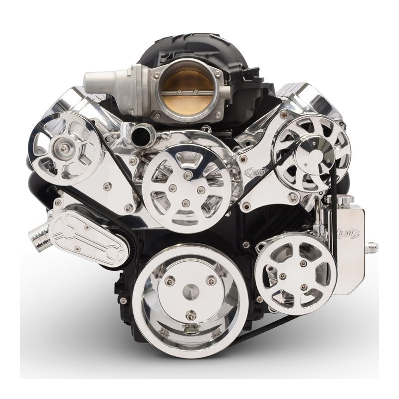 1962-1979 Nova EMS S-Drive Plus Serpentine Pulley System, No AC, Billet PS Res, LS Series, Matte Black Fusioncoat MS107-18BMB