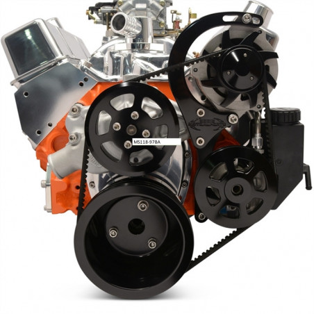 1962-1979 Nova EMS Chevy Big Block Raven V-Drive Kit, No AC, Plastic PS Res, Gloss Black Finish MS118-97BK