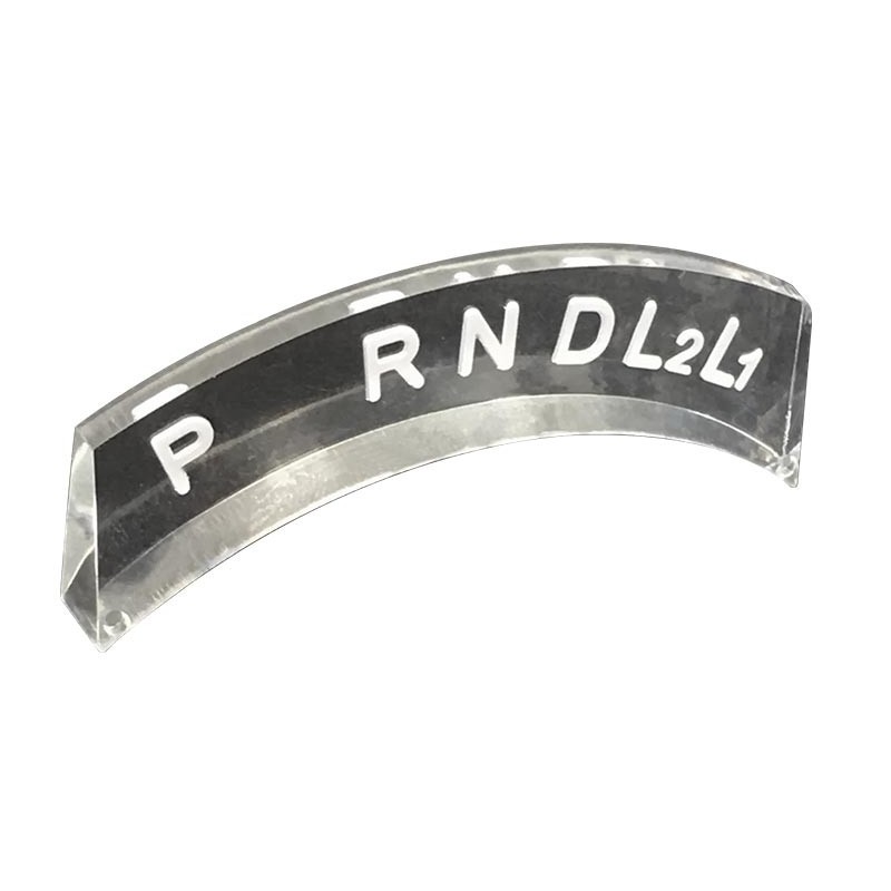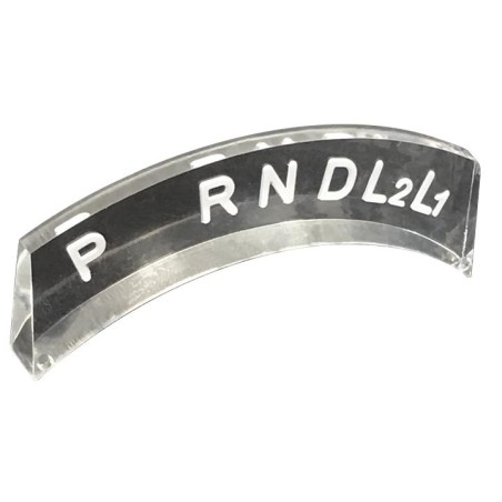 This is an new column shift indicator lens for the TH-350, or TH-400 transmission when used in a car that originally came with a Powerglide transmission. This lens fits in the stock location and can also be used to replace a hazed, or cracked original.