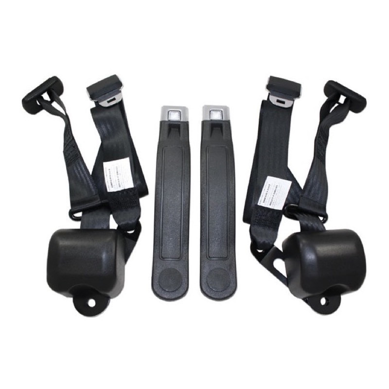 Add comfort and safety to your Nova while still keeping a stock look with Ground Up's 3 point retractable seat belts! These three point belts feature a vintage style lap belt and chest belt so you can new car safety with old car looks. Each kit includes two seat belts, grade 8 mounting hardware, and powder coated mounting brackets all assembled and ready to bolt in to your Nova. Instructions are also included. These seat belts mount in the factory locations meaning there is no drilling required. Seat belts meet FMVSS standards.