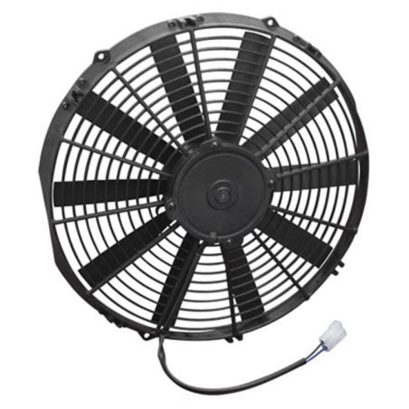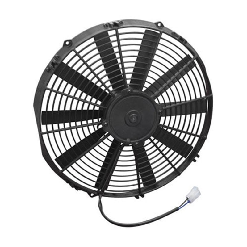 SPAL electric fans and accessories are built to meet the most rigorous cooling requirements needed for today's high performance automotive applications. SPAL fans are durable, reliable, and the choice of many NASCAR teams. SPAL offers a variety of high performance fans perfect for your motorcycle, ATV, automotive, and/or oil cooler applications. Manufactured from sturdy plastic, individually balanced for long service life, and most feature a fully sealed waterproof/dustproof motor for reliable performance in the most extreme conditions. SPAL fans can be mounted to any radiator with universal brackets and shrouds.Key Features:1274 CFMPuller Fan DesignStraight Style BladesPatented Motor DesignMedium Profile fans are perfect for max airflow in tight spacesFeatures fully sealed motor to IP68 standards making them waterproof/dustproofOffers high output CFM from a thinner assemblyDesigned to exceed the performance of comparable OE fans12V