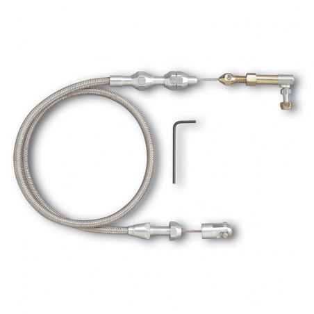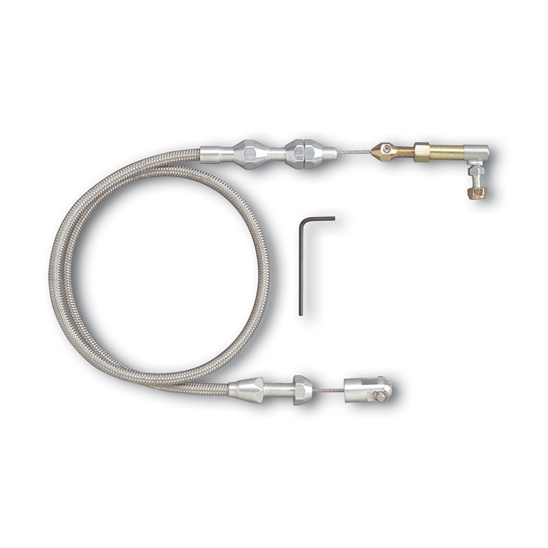 All Lokars Throttle Cables are available in either stainless steel braided housing, black stainless steel braided housing or black housing. They are designed with a specially extruded liner for extended life of the cable. Cables are equipped with aluminum fittings and aluminum ferrules to eliminate fraying. "U-Cut-to-Fit" outer housing is available in 24 or 36 inch length with a "U-Cut-to-Fit" stainless inner wire. Adapts to factory and aftermarket pedals.