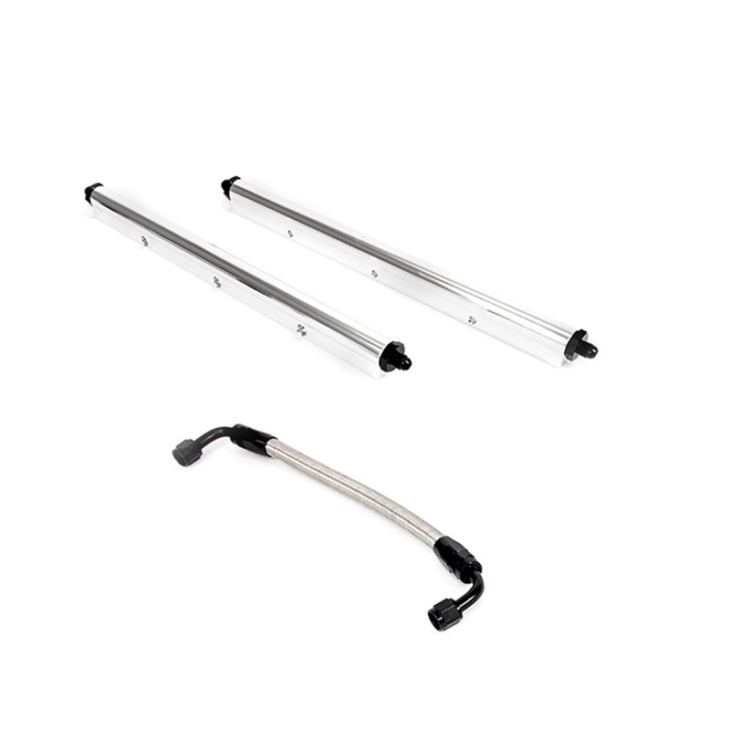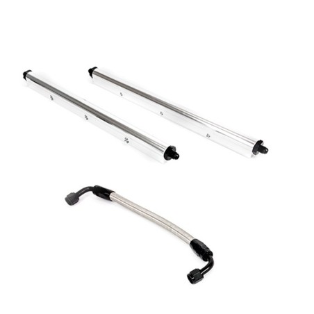 With the custom design of TSP's fabricated intake manifolds, you will need a set of billet aluminum fuel rails. They have been designed to support high pressure fuel systems in high horse power Novas and come complete with -8AN fittings, mounting hardware, and a durable, braided middle pipe.Features and Specifications:Injection Style:Multi-portFuel Rail Type:Custom TSP DesignFittings:-8ANCrossover Pipe Included:YesFuel Rail Material:Billet AluminumIncluded:Port O-Rings and Hardware