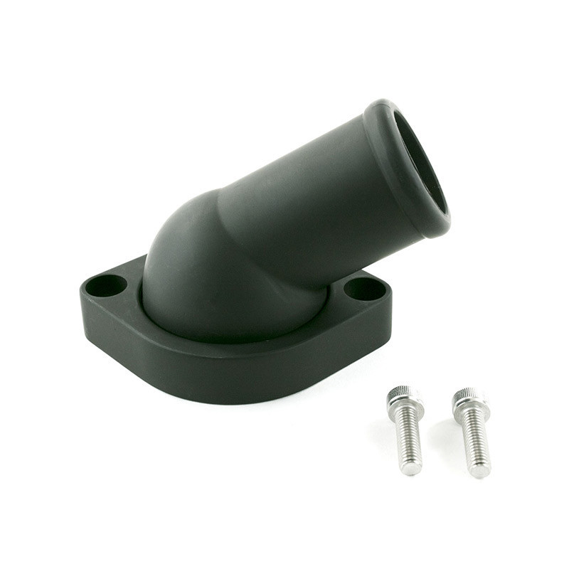 Don't miss a detail with a new water neck from TSP. Composed of high-quality aluminum, this water neck comes with bolts for easy installation on your LS swapped Nova.Features and Specifications:Water Neck Material:AluminumWater Neck Finish:BlackWater Neck Style:45°Sealing Style:O-Ring (Not Included)Swivel:YesHeater Bypass Provision:NoMounting Hardware:Included