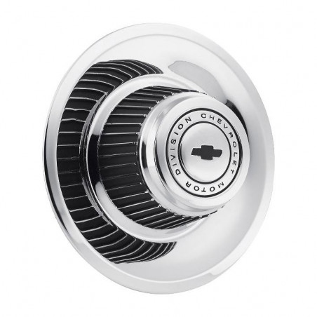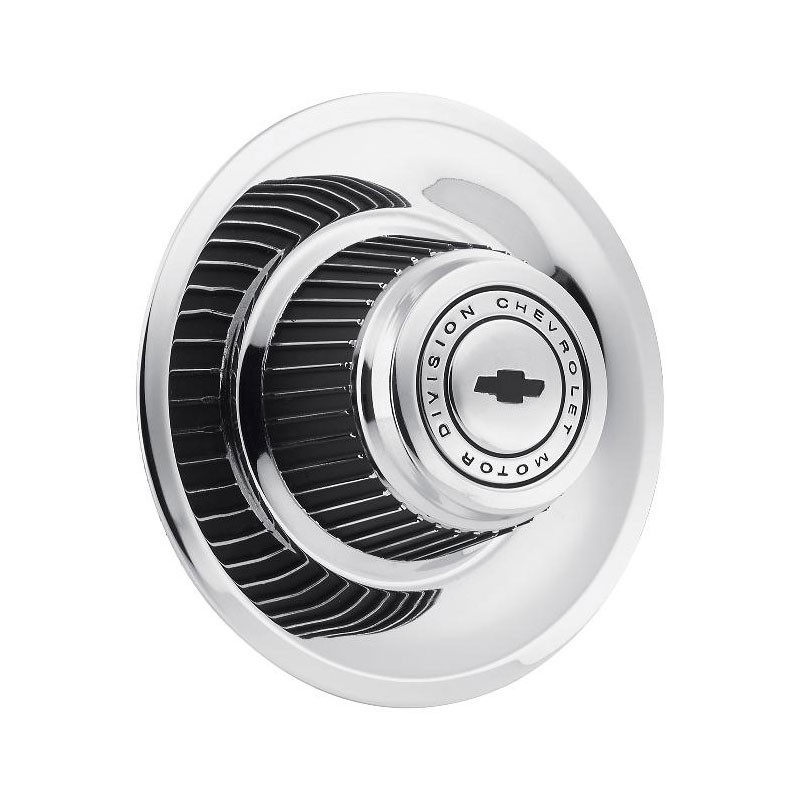 This chrome derby cap fits all Rallye wheels and wheels with an inside knob cap fitment of 7". The cap includes the Chevy bowtie and script "Nova Motor Division".Compatible WheelsSeries 54 RallyeSeries 55 RallyeSeries 57 Rallye