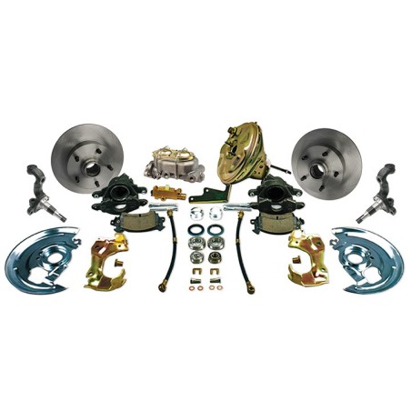 This 1964-1972 GM disc brake conversion kit allows you to convert your GM from a four wheel drum setup to a disc front drum rear setup for dramatically increased stopping power and safety. Unlike many other GM disc brake conversion kits on the market, this kit features all OEM style components for a factory fresh look. This kit includes fully loaded single piston calipers, brand new rotors, caliper backing plates, new flex hoses, a new OEM style master cylinder with cap, a Delco style gold cadmium power booster, new wheel bearings with hardware, and all bolts and hardware necessary to complete the job! This GM disc brake conversion kit fits all 1964-1972 GM and A-Body cars.Kit Contains:(1) Disc Brake Deluxe Mini Kit(1) 11 Inch Power Brake Booster(1) Master Cylinder, Disc Brake(1) Brake Caliper Right Side(1) Brake Caliper Left Side(2) Disc Brake Rotor, Single Piston Caliper