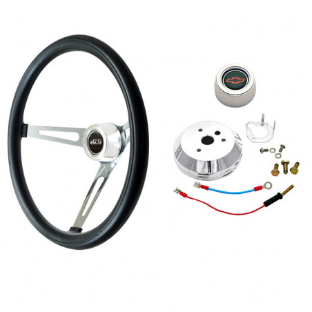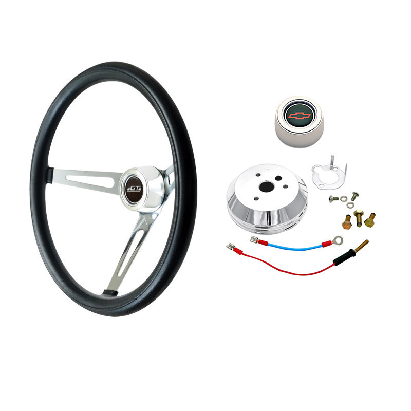 THIS WHEEL KIT INCLUDES A CHEVY BOWTIE LOGO HORN BUTTON. ADDITIONAL STYLES AND DESIGNS ARE AVAILABLE SEPARATELY.