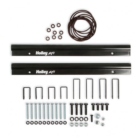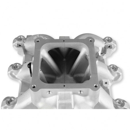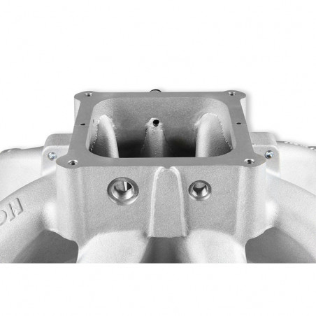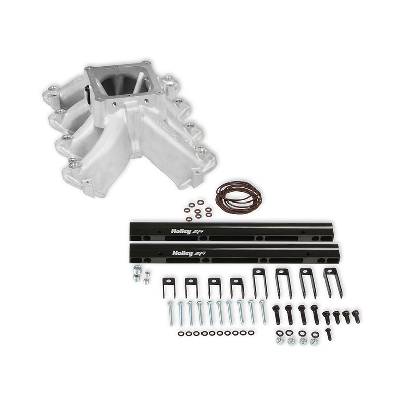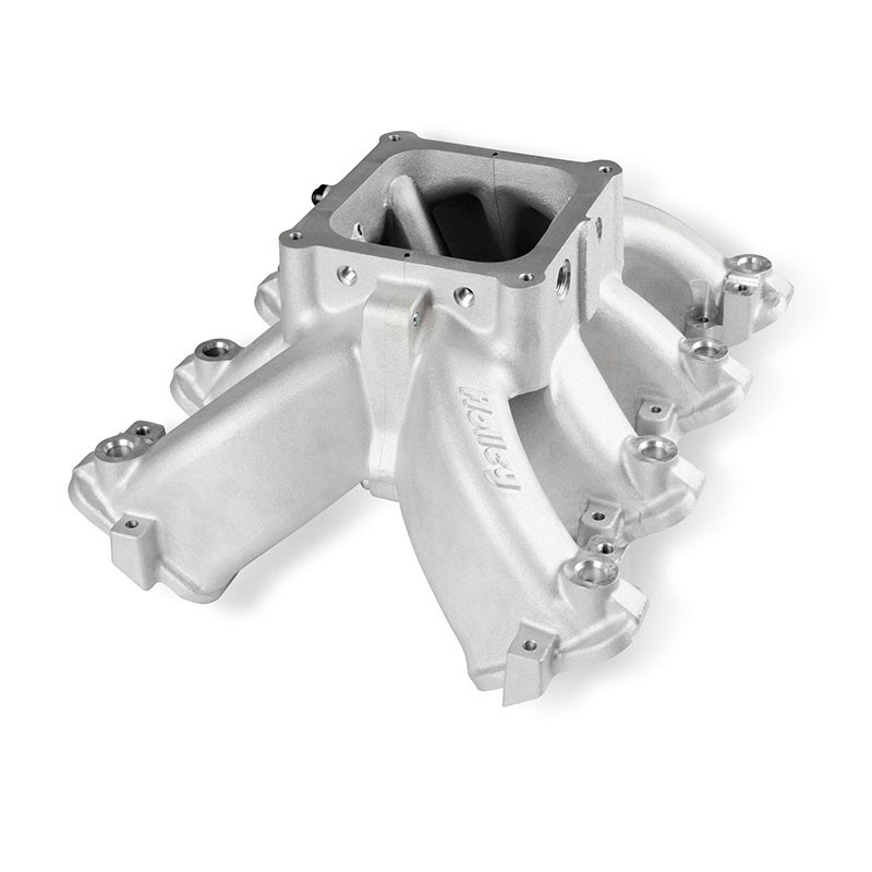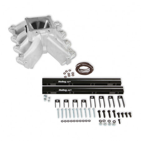The new Holley Single-Plane Race intake manifold is designed with maximum performance in mind. Featured is a two-piece split design that provides access for all levels of porting and modification. With shoulder bolt locators and O-ring seal, disassembly & reassembly is simple and precise.The manifold with AN-8 fuel rails fits GMs with GM LS Gen III engines with cathedral port heads and has a 4500 Dominator style carb flange for carburetors, EFI throttle bodies, or EFI throttle body elbows, and is configured with a LS MAP sensor port along with other NPT plenum vacuum or air-temp sensor ports.The LS Race single-plane intake manifold is designed for hi-performance/racing engine applications, 5.3 to 6.2+ liter displacements, N/A or with power adders. The large volume 4500 plenum and optimized runners provide airflow potential for Hi-RPM engines with max power at 7500-8000+ RPM.Features:Maximum performance 4500 Dominator flange race design with hood clearance considerationLighter than other split race intakesSplit feature making porting efforts easy!Captured O-ring seals at head ports and plenum splitVacuum Port options include (2) 1/8, (1) 1/4, and (1) 3/8, NPT ports at the carb flangeSpecs:Barrels:4Color:SilverConstruction:CastEngine:GM LS1/LS2/LS6Finish:SatinFlange Style:4500Front Height:7.32"Fuel System Type:EFIManifold Type:Split Single PlaneRear Height:7.32"RPM Power Band:2500-7000Warranty:Limited 90 Day