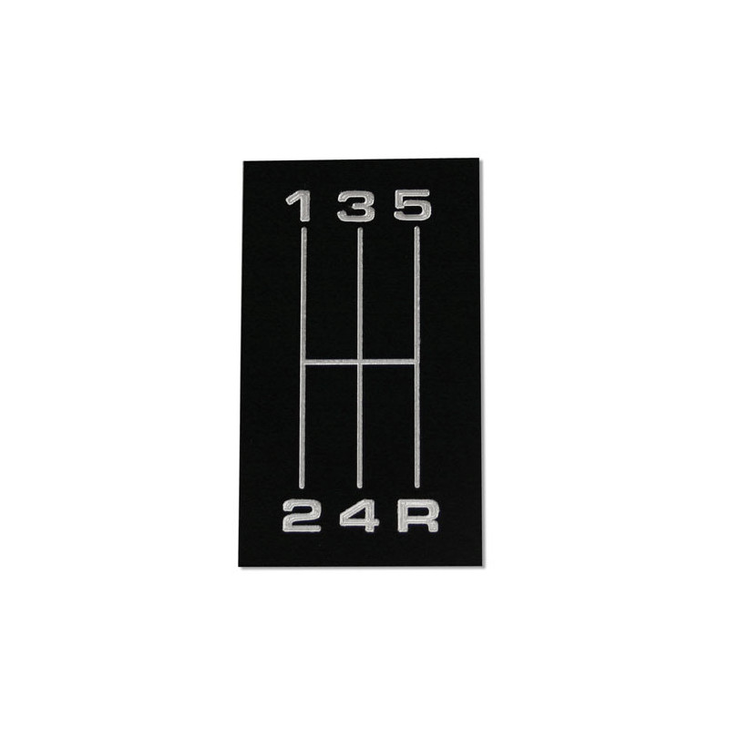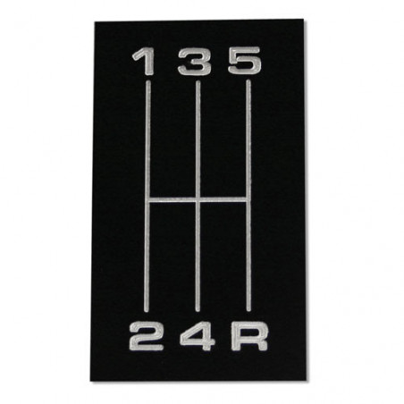 This is a GM 5 Speed shift pattern plate for your Richmond 5 speed. This plate is the same size as your stock plate and in fits perfectly in your console. It comes with sticky tape already installed on the back so all you have to do is peel and stick. Measures 2.41 by 1.4 inches.