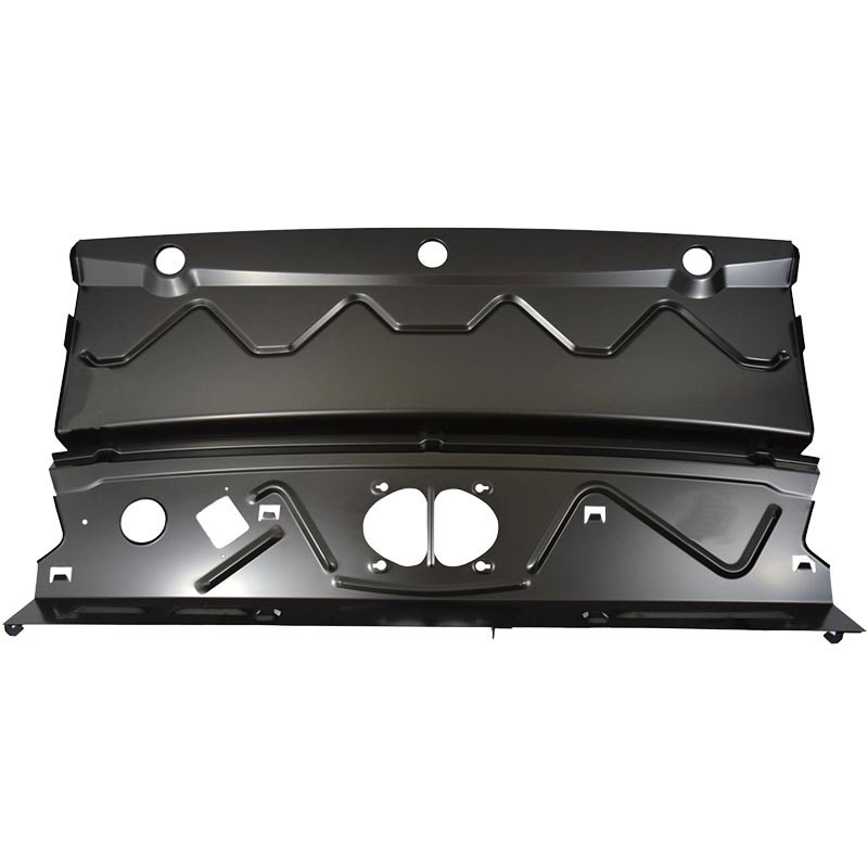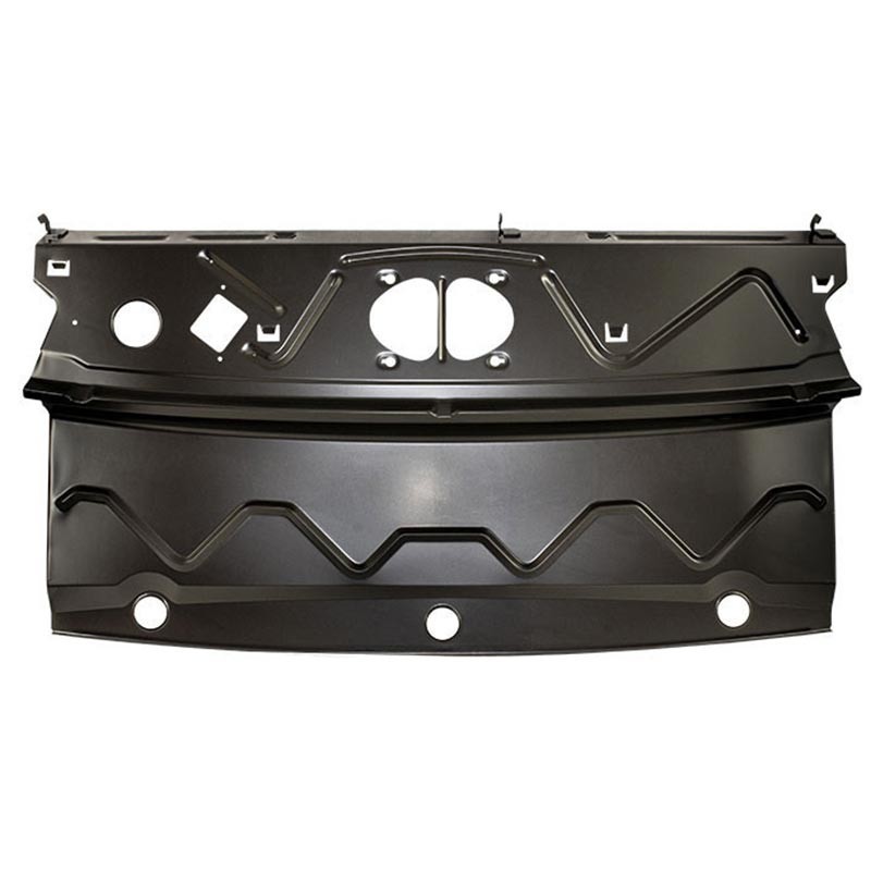 This panel replaces the commonly rusted section located beneath the rear deck package tray. Manufactured in stamped steel to match factory contours, it provides proper fit and structural integrity during restoration.