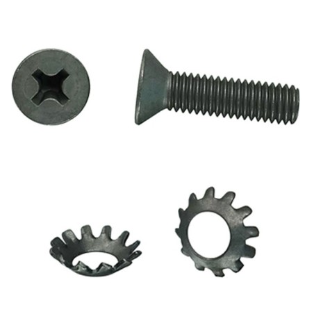 1964-1968 GM OE correct tailgate hinge bolt kit. This hardware kits connects the tailgate hinges to the bed and to tailgate. This hardware kit features the correct hex head bolts with captured washers, Phillips head screws, and countersunk tooth washers. This kit comes with (6) head head bolts, (6) countersunk tooth washers, and (6) Phillips head screws.
