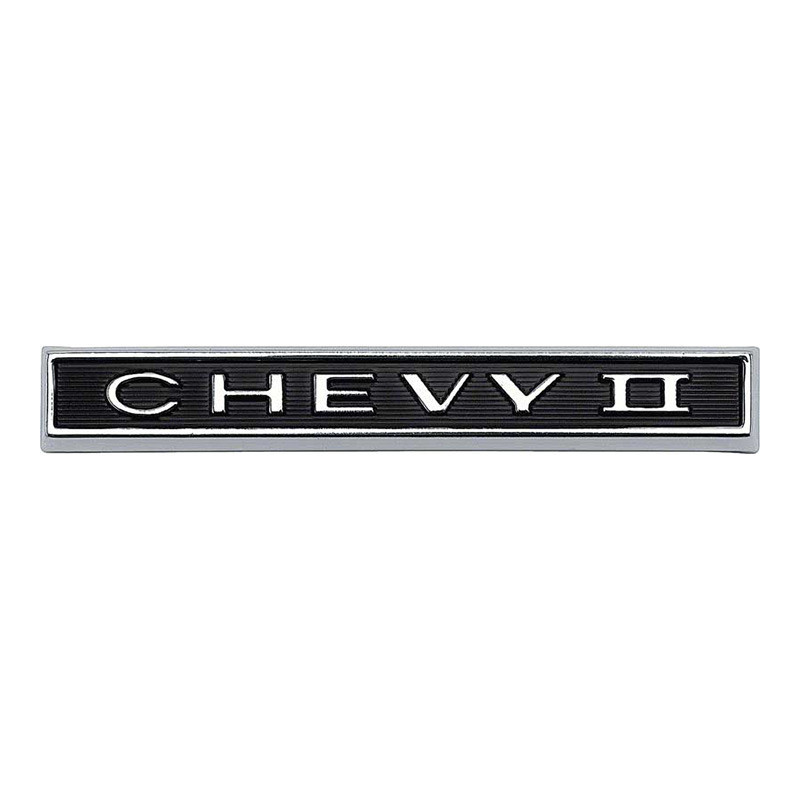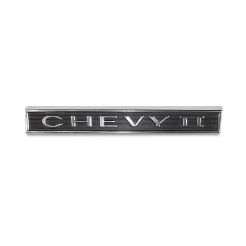 1966 GM reproduction CHEVY II front grill emblem. This beautiful reproduction is manufactured in die-cast zinc replicating the original in quality and appearance. Includes correct CHEVY II lettering with black background as original. Mounting hardware not included.