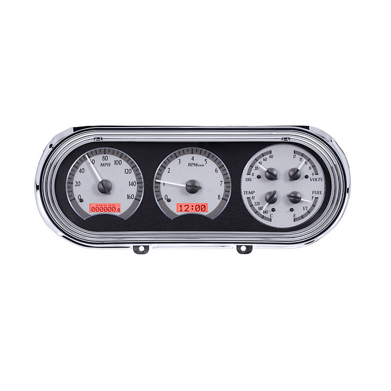 Fully lit needles, backlit faces, and highly visible LCD message centers are a few of the things that you can see which set the VHX Series apart from yesterday's traditional approach to instrumentation. A few of the features which you don't normally see are the micro-controlled precision stepper motors, solid state sensors for unparalleled accuracy, and user-customizable display feedback, all supported by an unrivaled limited lifetime warranty which has become the standard for Dakota Digital instrumentation systems . Completely engineered and manufactured in the USA, the VHX Series has completely revolutionized the instrumentation industry!Features:Analog Gauges:Speedometer : 0-160 MPHTachometer: 0-8000 RPMOil Pressure: 0-80 psiWater Temperature: 100-260 FahrenheitFuel Level: E, 1/4, 1/2, 3/4, FVoltmeter: 9-17 VDCLighting: Back lit technology is popular with performance instrumentation due to precise lighting allowing you to see what is truly important when you really need it at a quick glance. Each number, tick mark, annunciator, needle, indicator and digital message center is lit by a series of LEDs behind the gauge face.Digital Message Centers:Standard Displays: Odometer (one time user settable, million mile), Dual (A/B) Trip Meter (0-9,999.9), Clock (12 hour)Performance Meters: 0-60 MPH Timer, 1/4 Mile Time, 1/4 Mile End Speed (trap speed), High Speed Recall, High RPM RecallGauges: Speedometer (0-255 MPH), Tachometer (0-9,900 RPM), Oil Pressure (0-100 psi displayed in 1 psi increments), Water Temperature (100-300 degrees Fahrenheit displayed in 1 degree increments), Voltmeter (9-17 VDC), Fuel Level (0-99% full)Lighting: Auto-contrasting LCD display for optimal view in the brightest of sunlight, LED backlit at night to match/complete the look at nightBuilt-In Indicators:Turn SIgnalsHigh BeamCheck EngineParking BrakeCruise ControlGear Position (optional GSS-1962-1965 sensor required)4x4 (when vehicle is equipped)Wait to Start (when vehicle is equipped)Included Sensors:Water Temperature: 1/8 in. NPT, ground isolated sensor with a 10ft harnessOil Pressure: 1/8 in. NPT solid state sensor with a 10ft harnessCable Driven Speed Sensor/Generator: Replaces GM style speedometer cables with a 10ft harnessBushings: Each kit comes with 1/8 inch to 1/4 inch, 3/8 inch and 1/2 inch NPT bushings along with bushings for 12mm and 16mm x 1.5 threadsCalibration:Pushbutton: Dakota Digital instruments are programmed and operated by the push of a button. SImply mount the included pushbuttons supplied with your gauges in a convenient and easily accessible location. These buttons are used to calibrate your speedometer, set the cylinder count and fuel level gauge. Once properly configured, these same buttons are used to access the wealth of information located in the Digital Message Centers