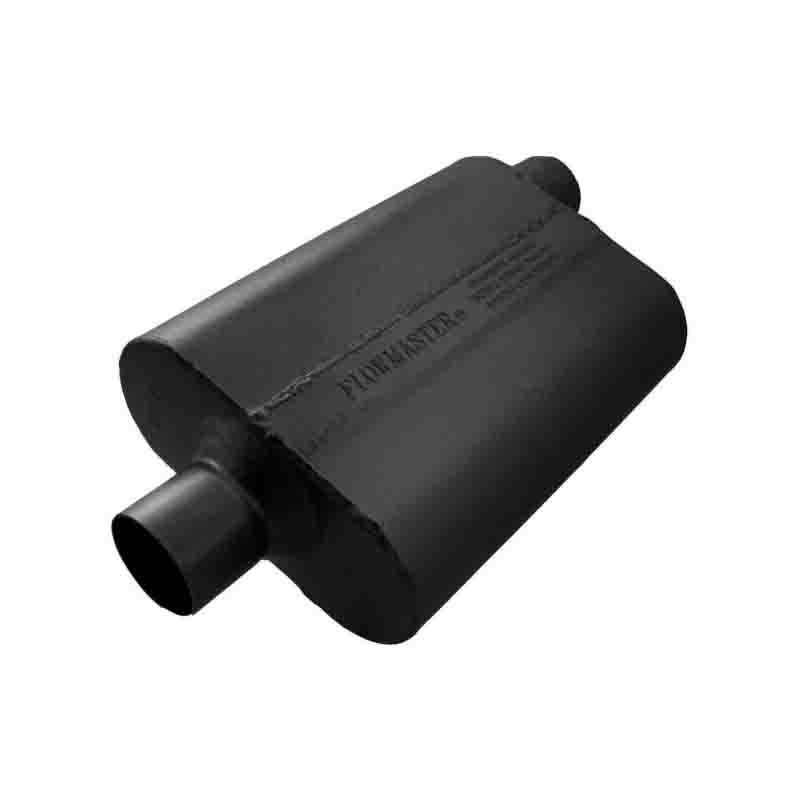 This two chamber design incorporates Flowmaster's patented Delta Flow technology. The Delta deflectors generate increased scavenging for better performance and reduced interior sound. Milder exterior tone and reduced interior resonance over Original 40 series. Constructed of 16 gauge aluminized steel and fully MIG welded for maximum durability.Features:No internal packing to blowoutExcellent Street/Strip and Off Road applicationRace proven patented Delta Flow technologyDurable fully welded 16 gauge aluminized steelSpecifications:Body Height (in): 4Body Length (in): 13Body Width (in): 9.75Fitment: UniversalInlet Connection Type: Pipe ConnectionInlet Diameter (in): 2.5Inlet Position: CenterMaterial: Aluminized SteelMount Type: Uses New Hangers (Not Included)Muffler Series: 40 Series Delta FlowMuffler Type: ReflectionOutlet Connection Type: Pipe ConnectionOutlet Diameter (in): 2.5Outlet Position: OffsetOverall Length (in): 19Shape: OvalSound Level: Aggressive Sound