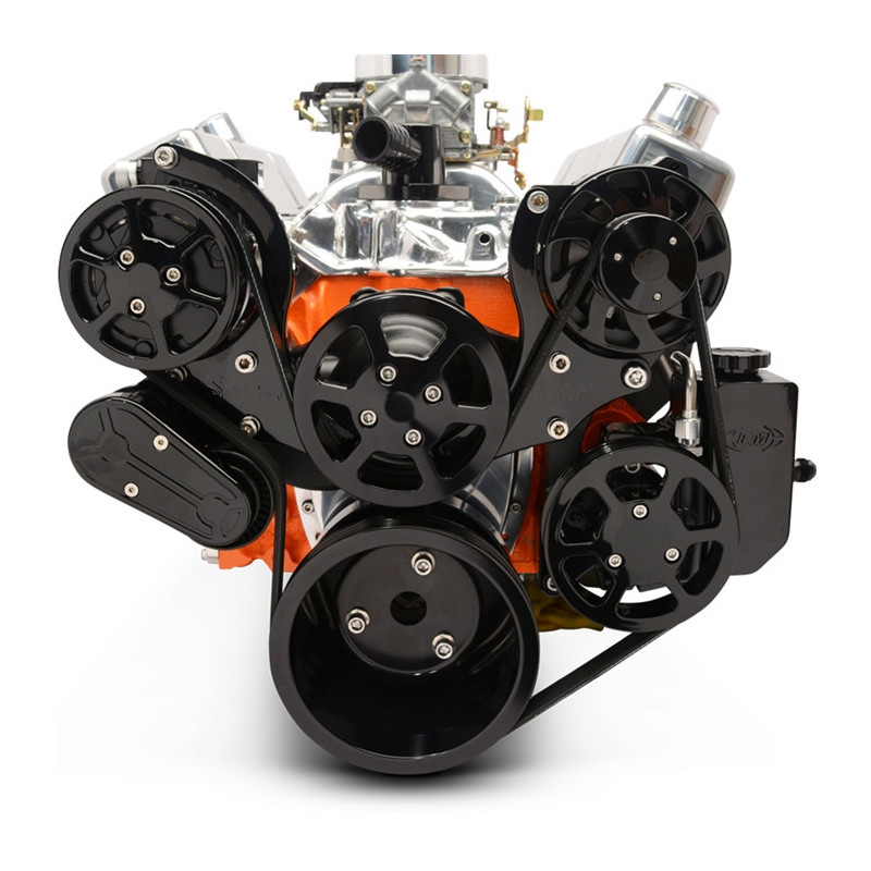 1978-1987 Regal EMS Small Block Raven S-Drive 6Rib Serpentine System, Billet PS Res, Gloss Black Anodized MS118-55BBA