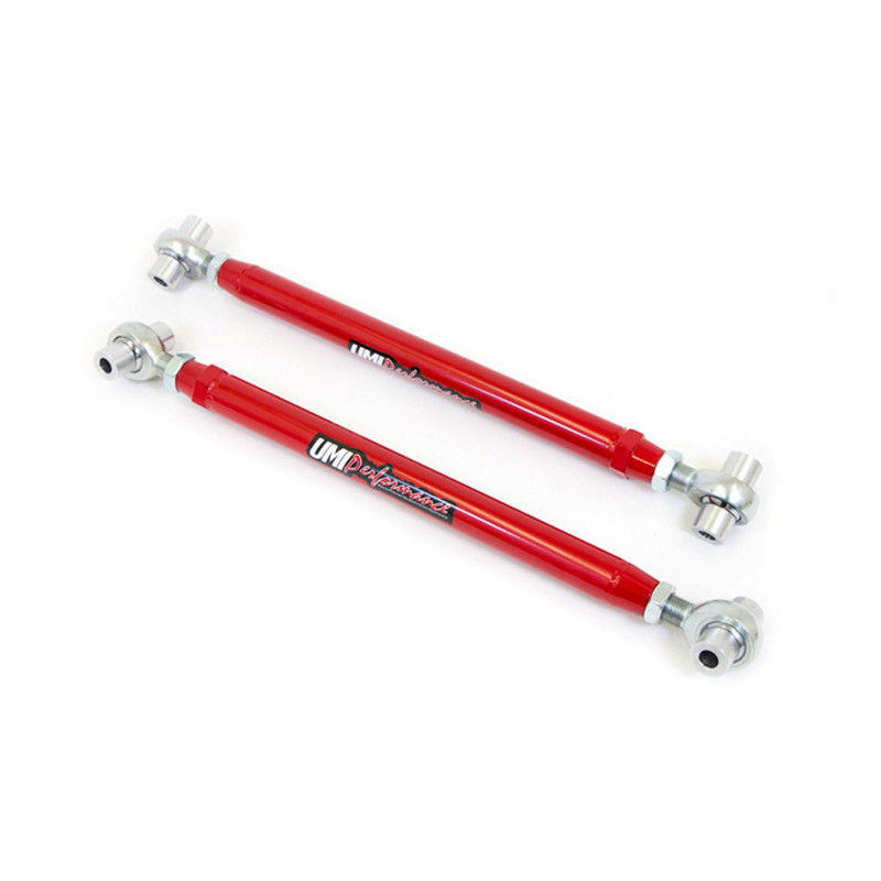 1978-1987 Regal UMI Tubular Rear Lower Control Arms, On Car Adj, Rod Ends, Chromoly, Red 2017CM-R