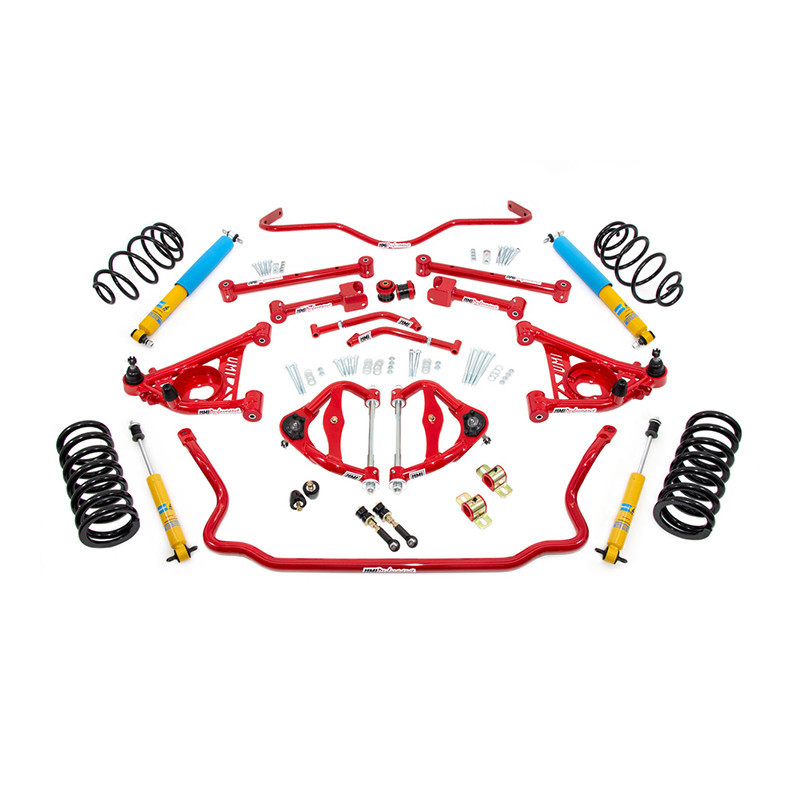 UMI Performance's newly reRegalted Stage 2 handling kit includes everything to upgrade and rebuild the suspension on your classic 1978-1987 GM Regal. The Stage 2 kit includes upper and lower front A-Arms, heavy duty UMI sway bars with new end links and greaseable bushings, UMI monotube gas shocks for all four corners, premium 2 inch lowering springs, rear tubular upper and lower control arms, replacement rear end housing bushings and heavy duty tubular frame braces. We also include all new Grade 10.9 hardware with locking nuts to complete the installation. This kit will make any classic cruiser feel like a modern day muscle car! UMI's Stage 2 may be our entry level complete kit but it isn't entry level performance or entry level quality. Perfect for the weekend warrior looking to go for a back road cruise, perhaps hit the drag strip or even an auto-x. As with all UMI Performance products, this kit is 100% Made In USA.Features:UMI-3031 : Tubular lower front a-arms with polyurethane bushingsUMI-3033-1 : Upper front a-arms with Delrin bushings, tall ball jointsUMI-3035 : Heavy duty 1-1/4 inch front sway bar with new bushings & endlinksUMI-3034 : Solid 1 inch heat treated rear sway barUMI-3015 : Tubular rear lower control arms with polyurethane bushingsUMI-3016 : Tubular rear upper control arms with polyurethane bushingsUMI-3028 : Tubular frame braces with hardwareUMI-3000 : Replacement rear end housing bushingsUMI-3013 : Front upper & lower grade 8 hardware kitUMI-3001 : Rear control arm grade 8 hardware kitUMI-S41030 : UMI monotube shocks, designed & tuned for optimum ride quality combined with performanceUMI-3051 : 2 inch lowering springs, 600lb/in. front and 130lb/in. rear